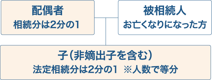 - 法定相続人のうち、お亡くなりになった方がおられるときは、その子が代襲相続人となります。