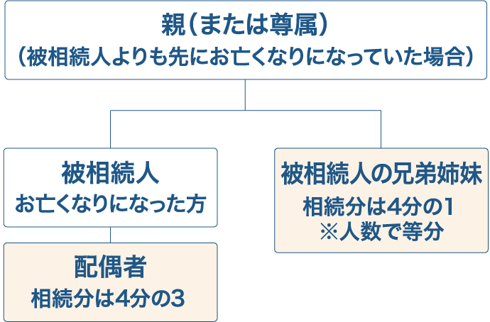 ③ お子さんがなく、非相続人のご両親(および尊属)もすでにお亡くなりの場合は、